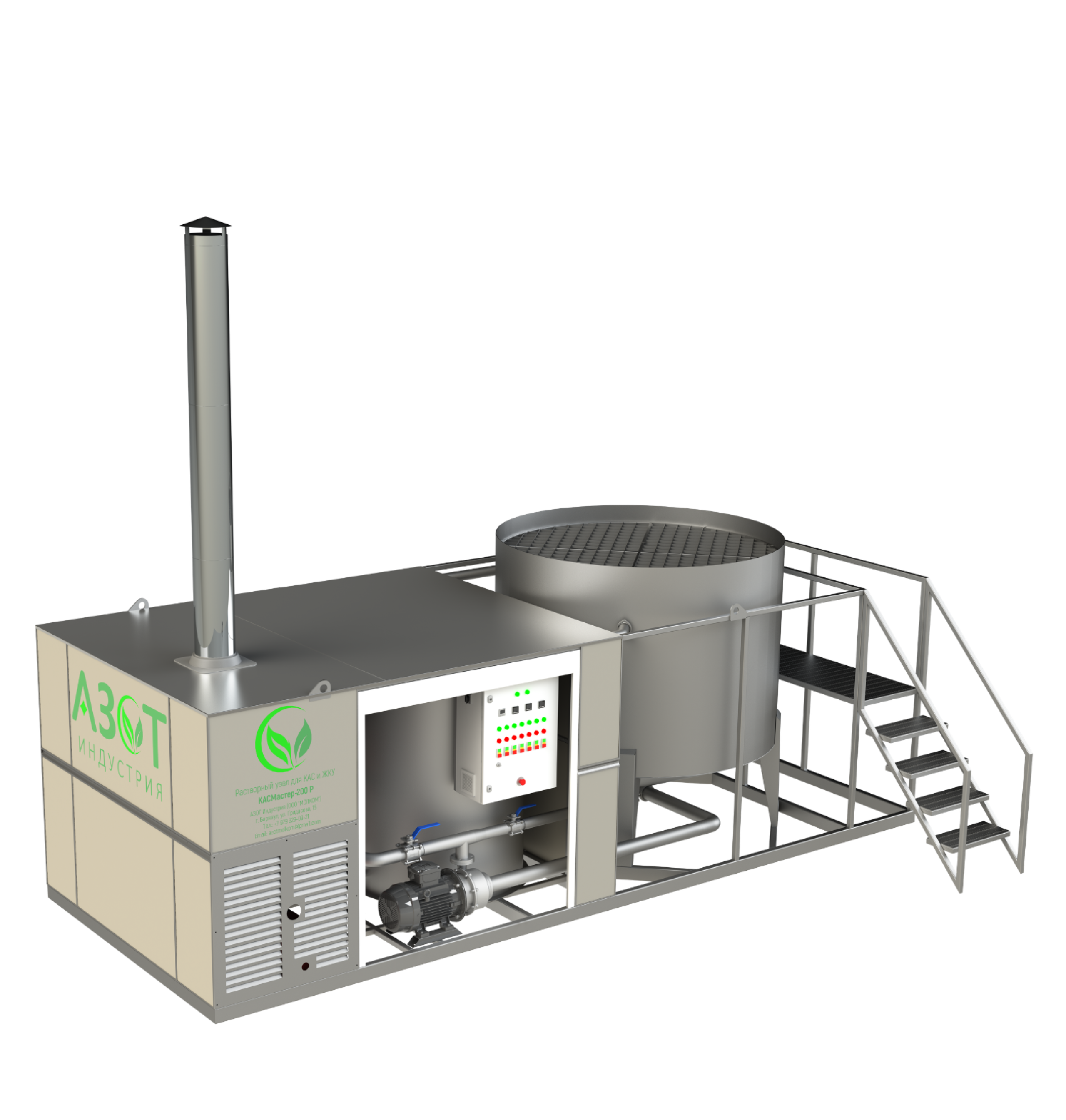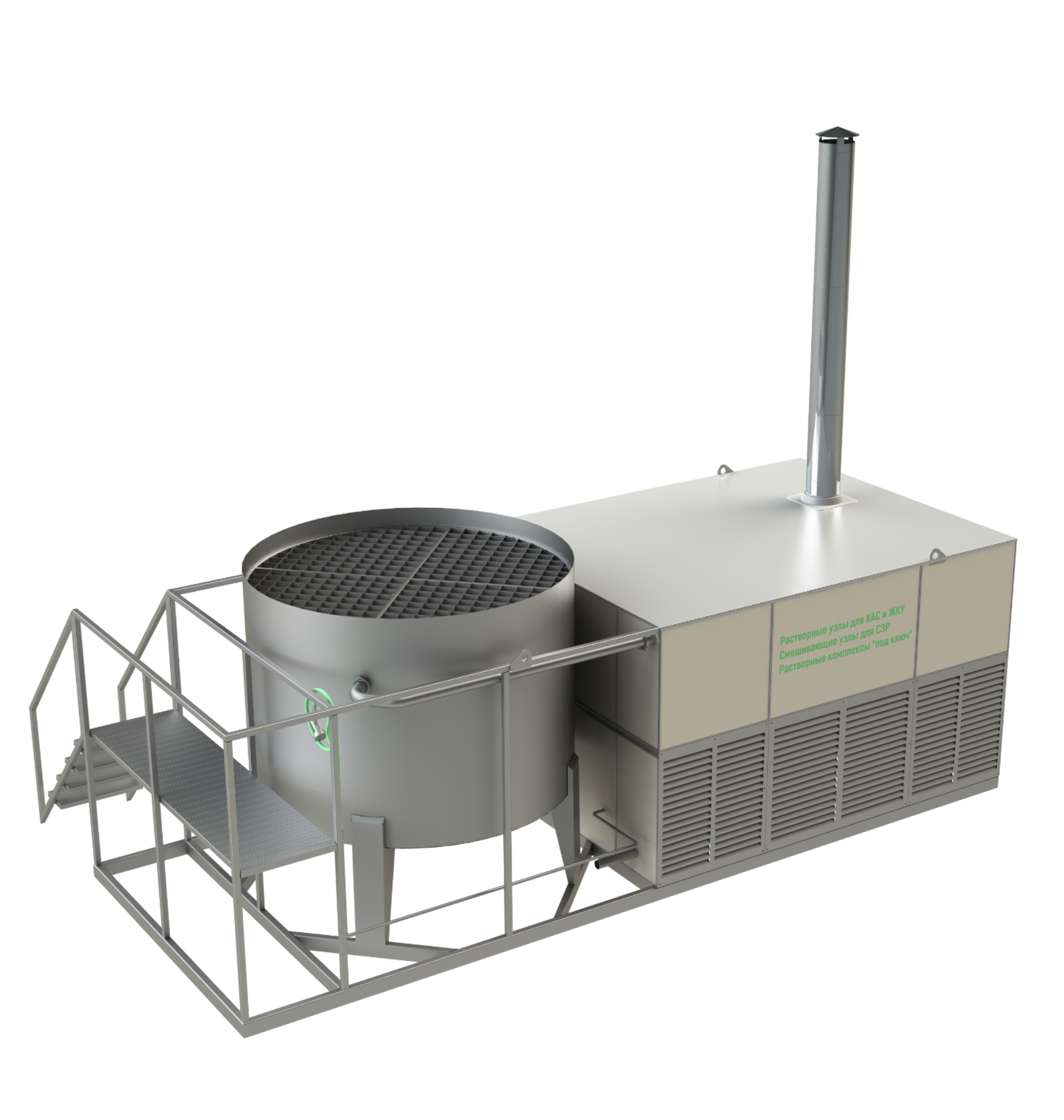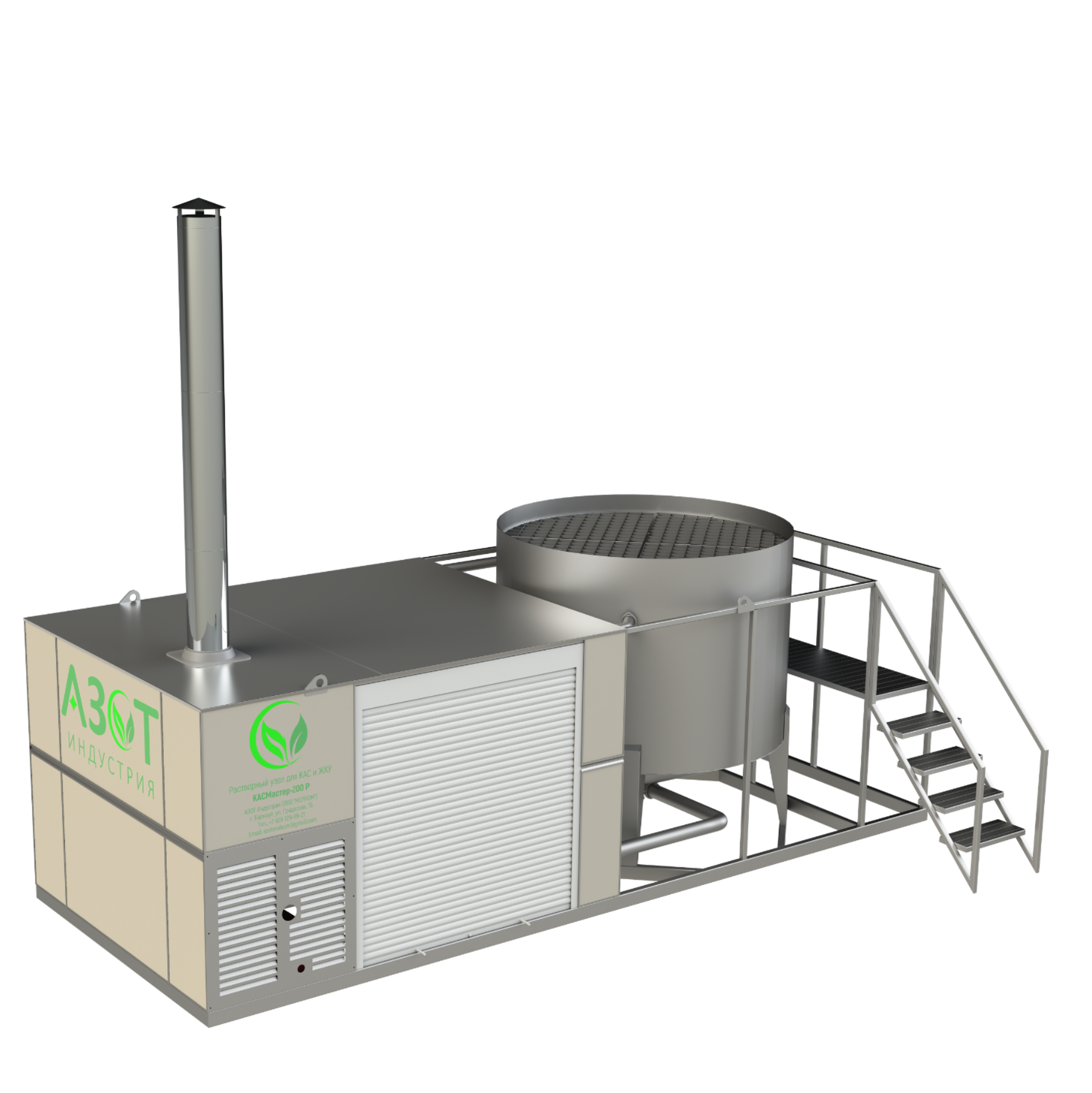 Предназначен для приготовления КАС различных марок, жидких комплексных удобрений с различным NPK-балансом, а также кратно увеличивает эффективность растворения карбамида и прочих легкорастворимых удобрений с подогревом и без, путем гидро-перемешивания. Допускается установка как в помещении, так и на улице на бетонной площадке.